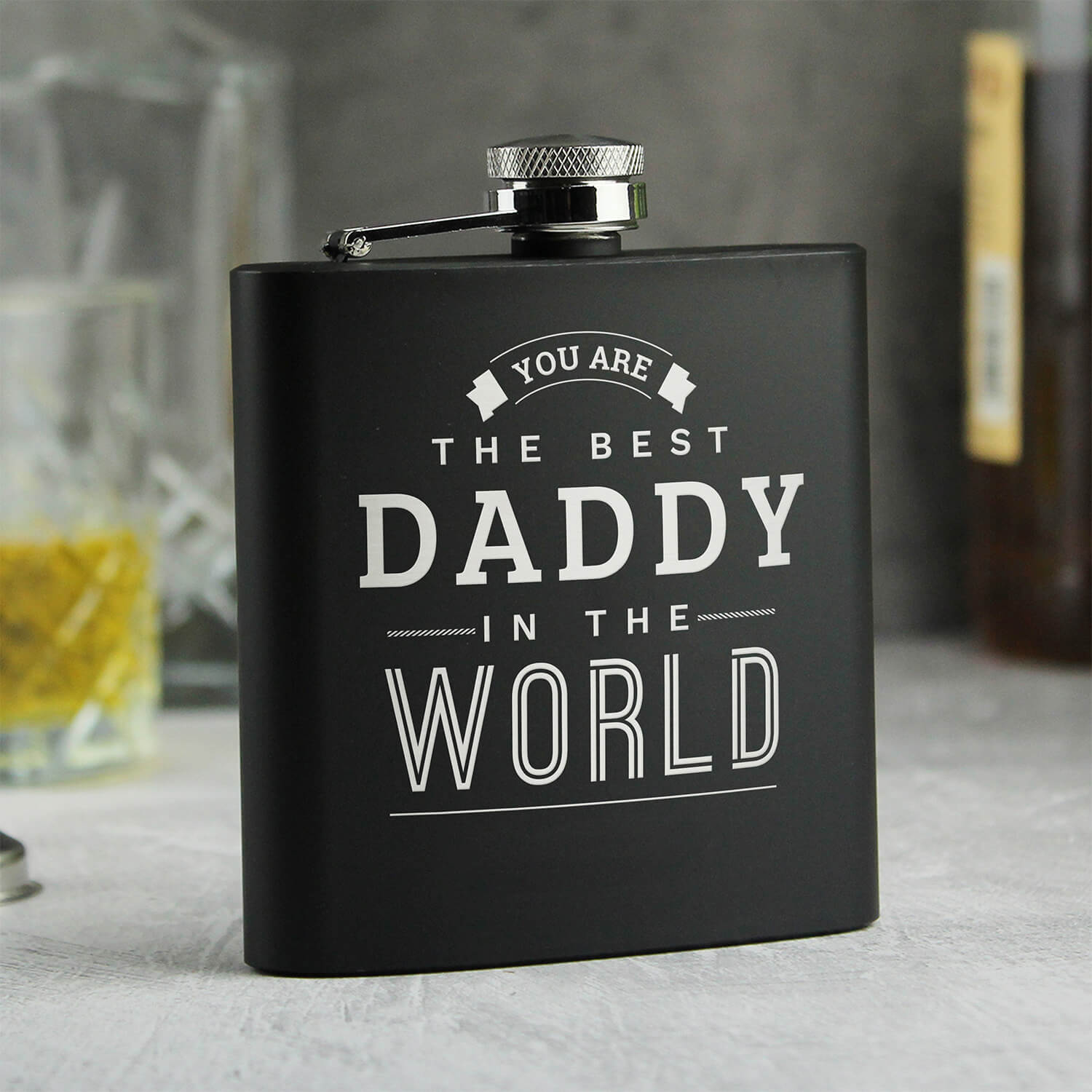 Buy Personalised Best In The World Black Hip Flask from Coopers of Stortford at £16.99